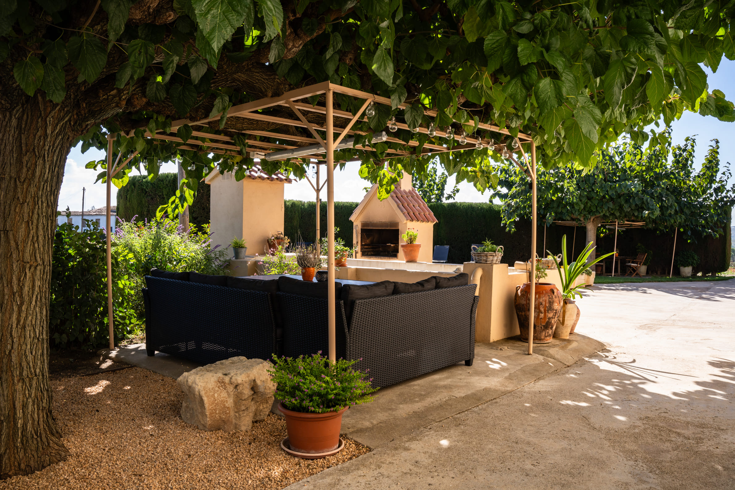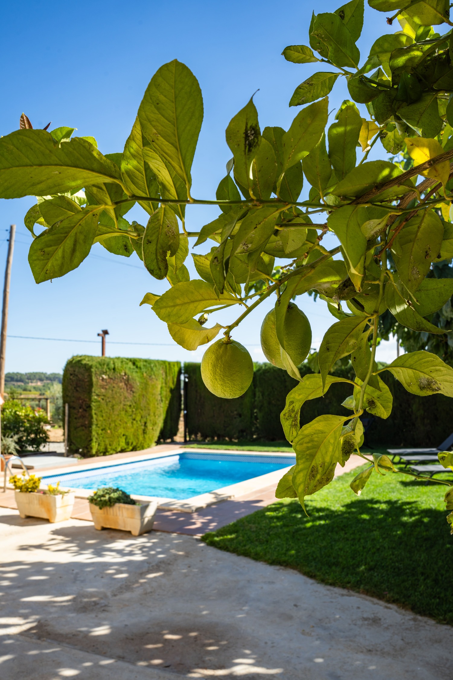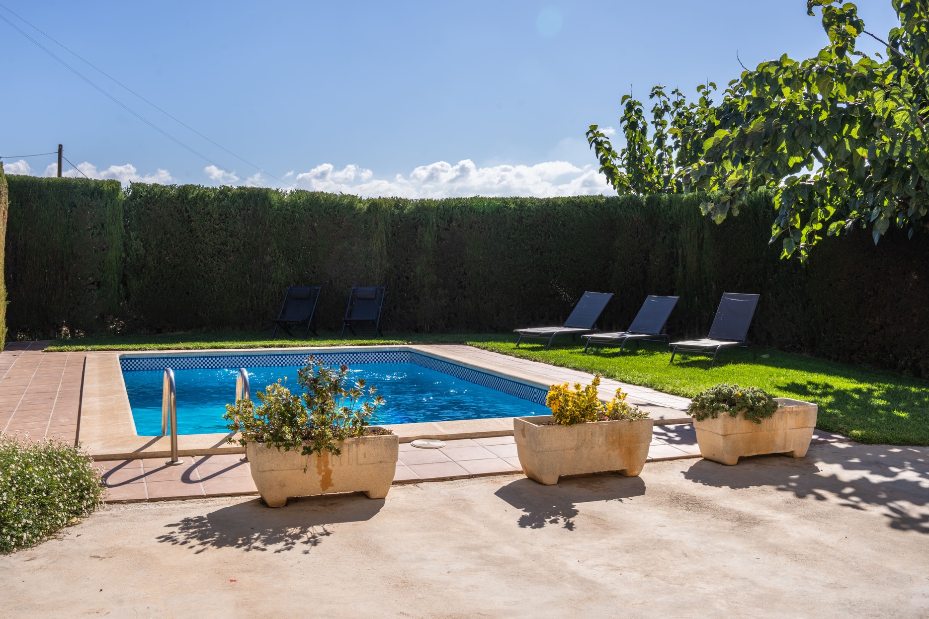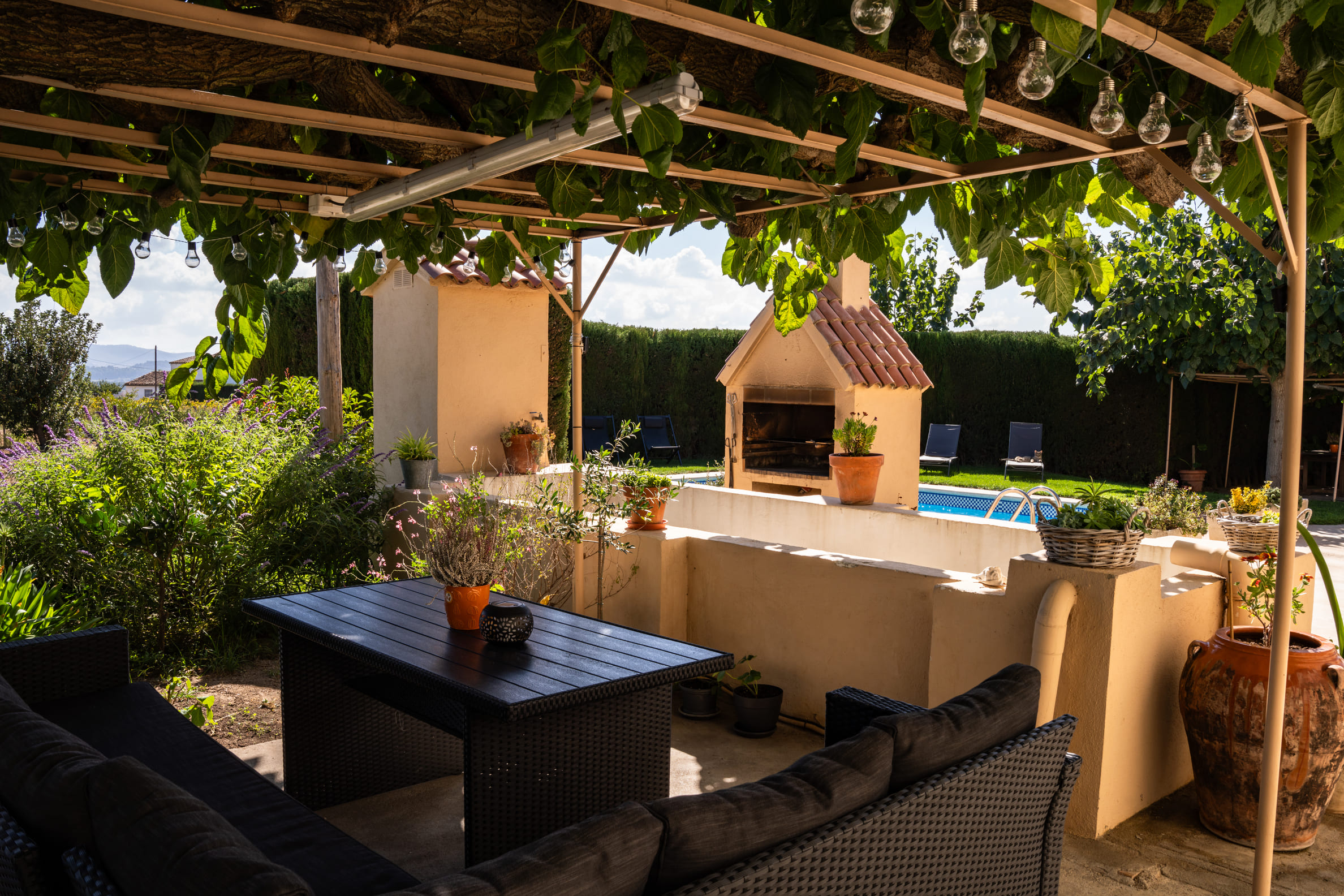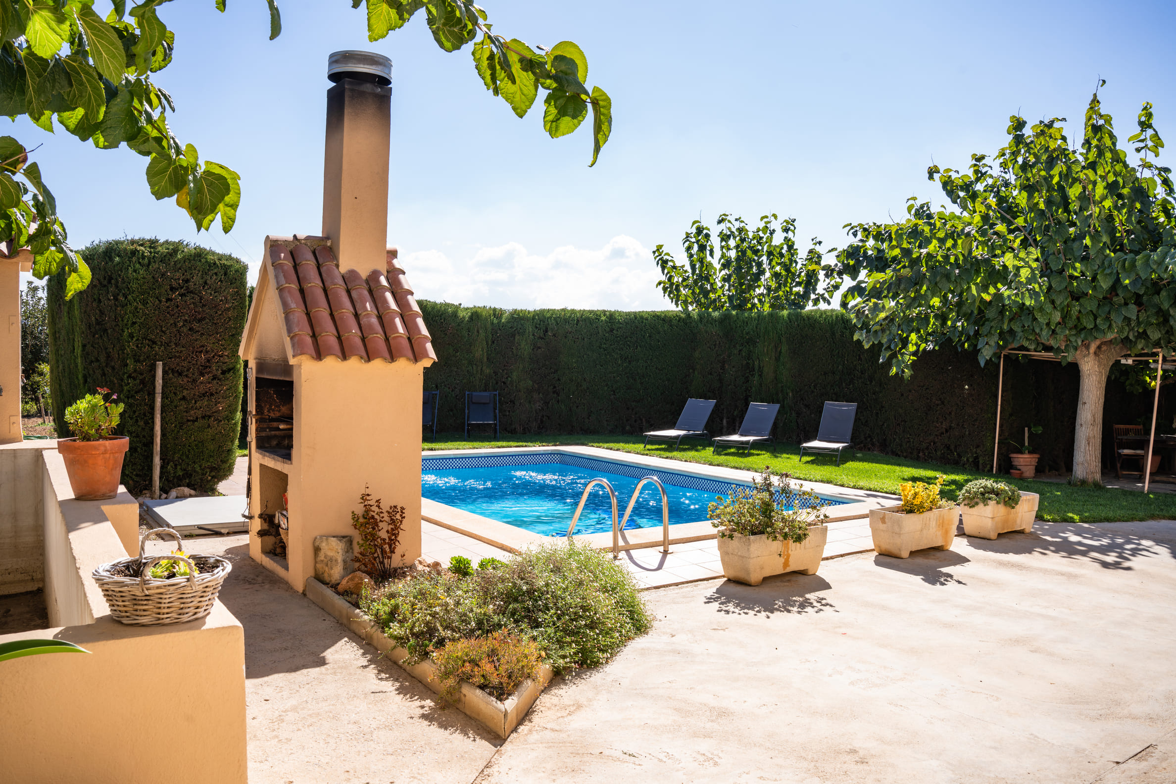 A l’exterior, els hostes poden gaudir d’un ampli jardí, d’una barbacoa i d’una piscina ideal per refrescar-se a l’estiu, tot envoltat de natura i tranquil·litat.